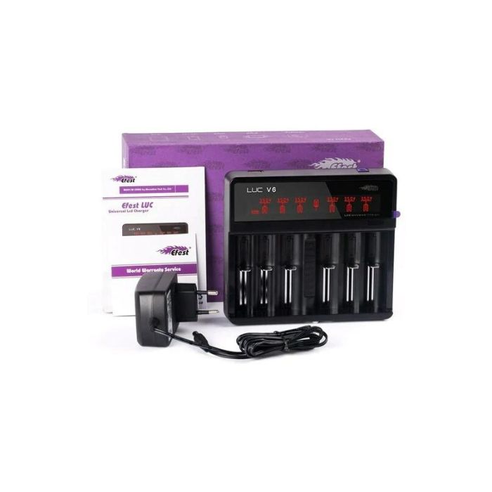 Efest LUC V6 Battery Charger – 6-Slot Intelligent Charger with USB Power Bank and Advanced Safety Features