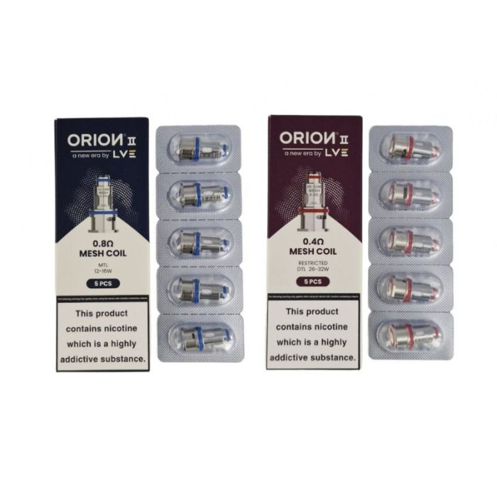 Shop LVE Orion II Replacement Coils for superior flavor and performance. Available in 0.4Ω DTL and 0.8Ω MTL mesh options, these coils offer even heating, rich vapor, and long-lasting durability for the LVE Orion II Device.